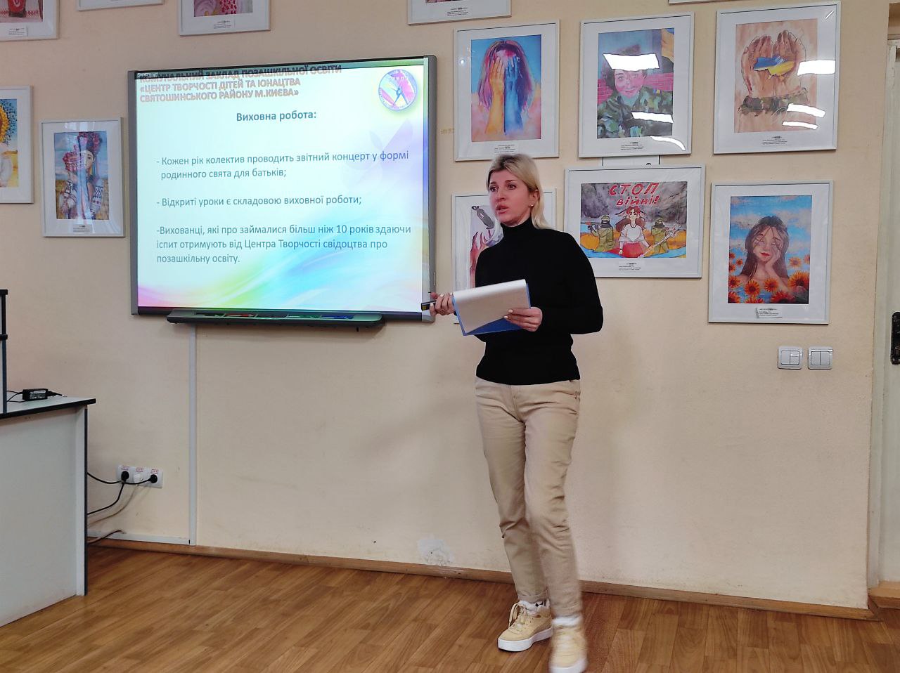 Відрив нашу педраду виступ методиста з PR нашого закладу Міліцької Ольги з темою “Формування позитивного іміджу позашкільного навчального закладу”. Обговорили важливість участі кожного керівника в формуванні позитивного іміджу нашого закладу. Далі прослухали Завідувачку науково-технічного відділу Хомякову Ольгу, яка доповідала з темою “Підсумки 2024 року образотворчого та науково-технічних відділів. Надія Панова Завідувачка естетичного відділу поділилась з нами презентацією на тему “Підсумки 2024 року естетичного відділу”. Заступниця директора Ірина Іваннікова виступила з дуже актуальною темою “Організація інклюзивного навчання в закладах позашкільної освіти”.